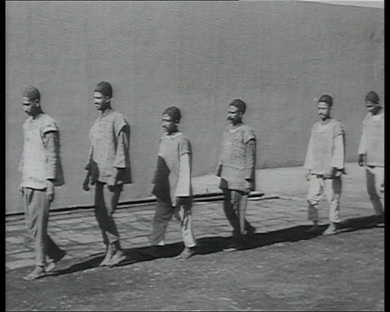 Czasami kamera jest jak broń. Dziedzińce w więzieniu Corchoran (USA) są porozcinane jak kawałki tortu. Na ich wierzchołkach czuwają kamery i uzbrojeni strażnicy. Kiedy więźniowie się biją, pozostali rzucają się na ziemię, bo wiedzą, że padną strzały. Harun Farocki pokazuje sceny ilustrujące, jak machina funkcjonuje i uśmierca „więzienie”. Materiał Farockiego fascynuje doborem filmowanych miejsc i perspektywą spojrzenia. Sceny z filmów fabularnych, dokumentalnych i propagandowych zawsze pokazują więźnia, jako osobę wykluczoną, potencjalnie agresywną, ewentualnie zaburzoną psychicznie.