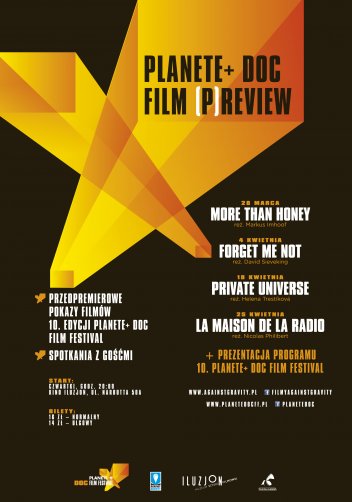 warszawskiego kina Iluzjon będą mogli zobaczyć przedpremierowo wybór najciekawszych filmów z programu tegorocznej edycji festiwalu PLANETE+ DOC, która odbędzie się w dniach 10-19 maja w Warszawie, Wrocławiu i 20 miastach w Polsce. Pokazom będą towarzyszyły spotkania z gośćmi.