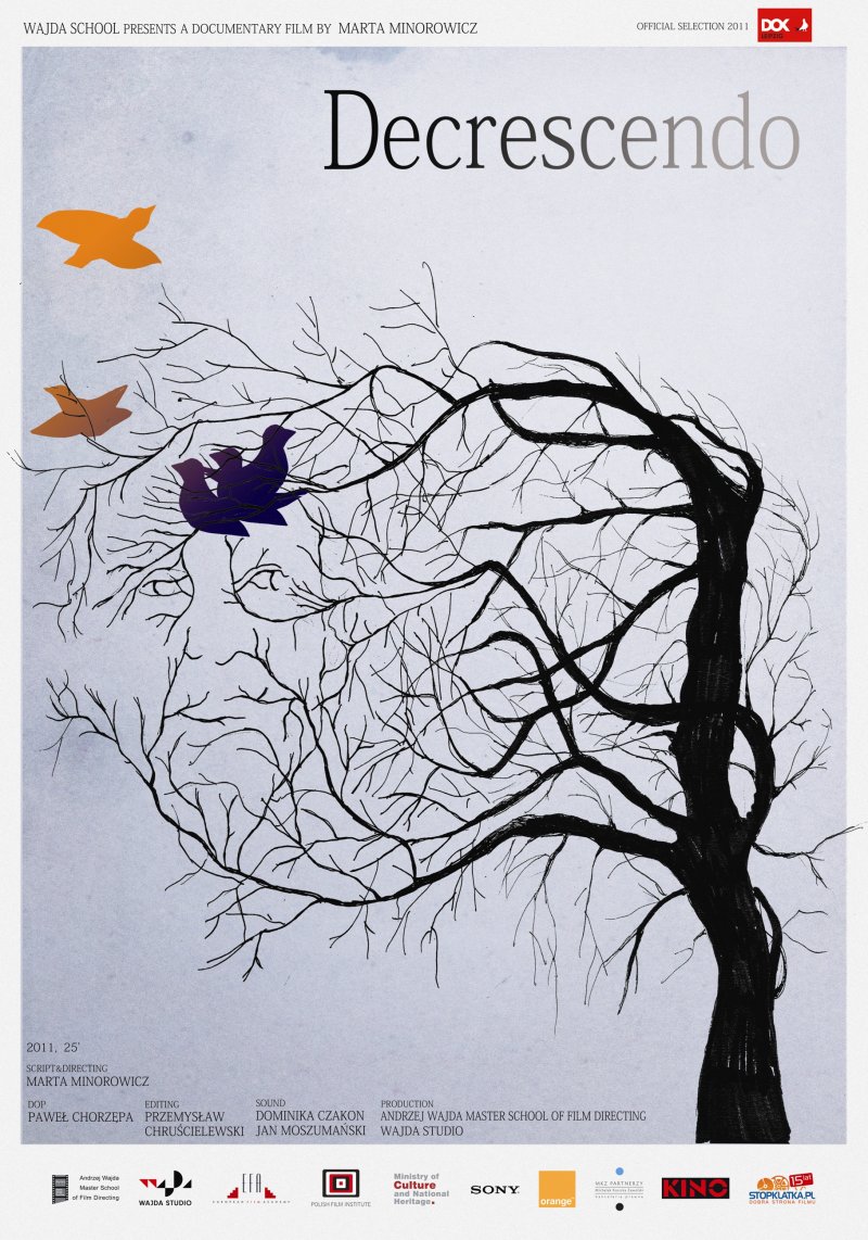 Muzyka grana przez młodego terapeutę wprowadza nas w świat mieszkańców domu spokojnej starości. Jego towarzystwo sprawia, że czują się znów potrzebni i wysłuchani. Równocześnie on sam, codziennie stykając się z nieuchronnością śmierci, próbuje odnaleźć sens we własnym życiu. Muzyczny termin decrescendo nabiera tutaj nowego - egzystencjalnego znaczenia.