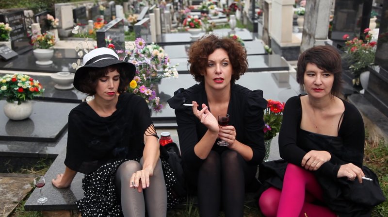 Dziewczyny, zajmujące się na co dzień sztuką współczesną, wiedzą jednak, że „lepiej jest pisać śmiechem niż łzami”. Sadzają zatem swoich bohaterów - podobnie jak to się dzieje w filmach Emira Kusturicy - przy jednym stole, na którym nie brakuje alkoholu i zakąsek. I tak jak w filmach autora „Undergroundu”, wysokie przeplata się tu z niskim, a kolejnym butelkom rakiji towarzyszą zarówno wzruszenie jak i koszarowe żarty… Ciągnącą się godzinami biesiadę umila zaglądający ucztującym do talerzy czeski zespół elektro.